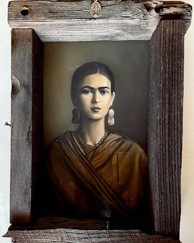 I can't remember anymore when I first discovered Frida, but I love her. I started making mixed media work on her back in 2015, I think. This is my first attempt at painting her, which is way more difficult and intimate. It takes time and a lot of focus to make a painting for me. I made this first one small. She's 11x15" with custom frame. I decide I want to save it for myself, then I decide to make it available. I'll paint more and soon. That's where my head is these days. Thanks.