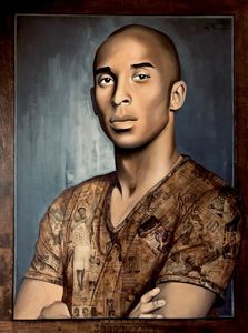 When we lost Kobe, Gianna and their friends it broke our hearts. I had to paint him to work it out of my system. For the collage, I used historical newspaper clippings I was lucky enough to get my hands on for this special piece. I hope you enjoy the effort. This painting is still a work-in-progress. Thank you.